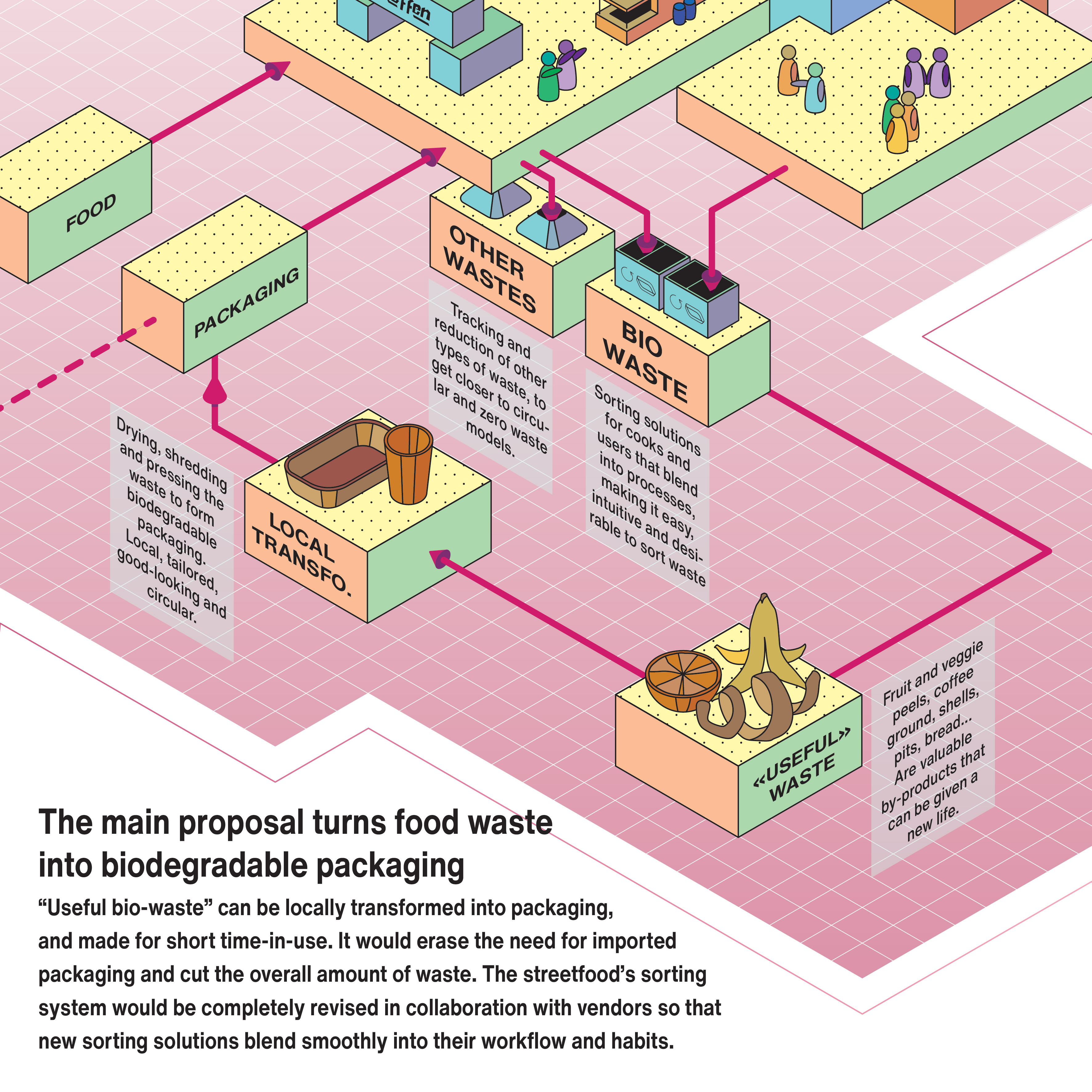 A visualization exercise about envisionning more circularity in the context of Reffen, Copenhagen’s most popular street food.